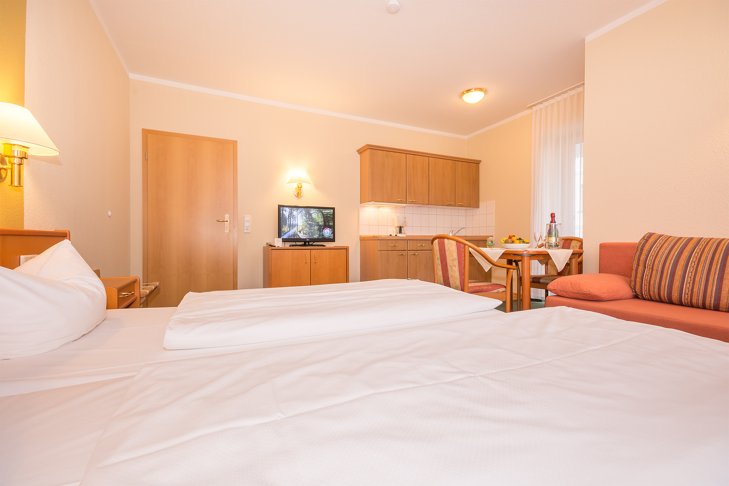 Unsere liebevoll eingerichteten 1-Raum-Appartements, zeichnen sich durch eine perfekte Verbindung von Gemütlichkeit und Wärme aus. Auf großzügiger Wohnfläche kann nach Herzenswunsch gefaulenzt und entspannt werden.